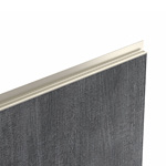 Base sospesa CartaBianca a profondità variabile, perfetta in spazi stretti e lunghi. La finitura dei cassettoni in impiallacciato Rovere Termocotto si alterna con il modulo di raccordo a giorno laccato Nichel. Sul piano in Pietra Medea poggia il lavabo Speen 3 in Marmoresina Bianca. Sempre in Rovere Termocotto anche il pensile con anta che completa l’insieme di specchio Recto con lampada applicata Recta a LED e finitura in Acciaio Inox e della mensola in metallo. Anche le colonne a giorno hanno struttura in metallo e si prestano a numerose funzioni. Carta da parati in fibra di vetro applicata anche a pavimento.