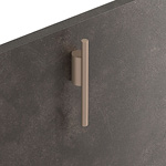 Base CartaBianca a terra in nobilitato Polaris, così come il piano su cui poggia il lavabo Anna L laccato esternamente in Marrone Ocra (Ral 8001). La base poggia su piedini in finitura Nichel che si abbinano all’accessorio vassoio così come al miscelatore a parete Amy nero opaco e alla lampada Tubetto a LED applicata allo specchio Recto. Coordinata alla finitura del lavabo anche la pratica mensola in metallo applicata allo specchio. Il coordinamento tra finiture è così flessibile da spingersi fino alle maniglie dei cassettoni della base, ma anche alla laccatura esterna della vasca freestanding Style in Tecnoril.